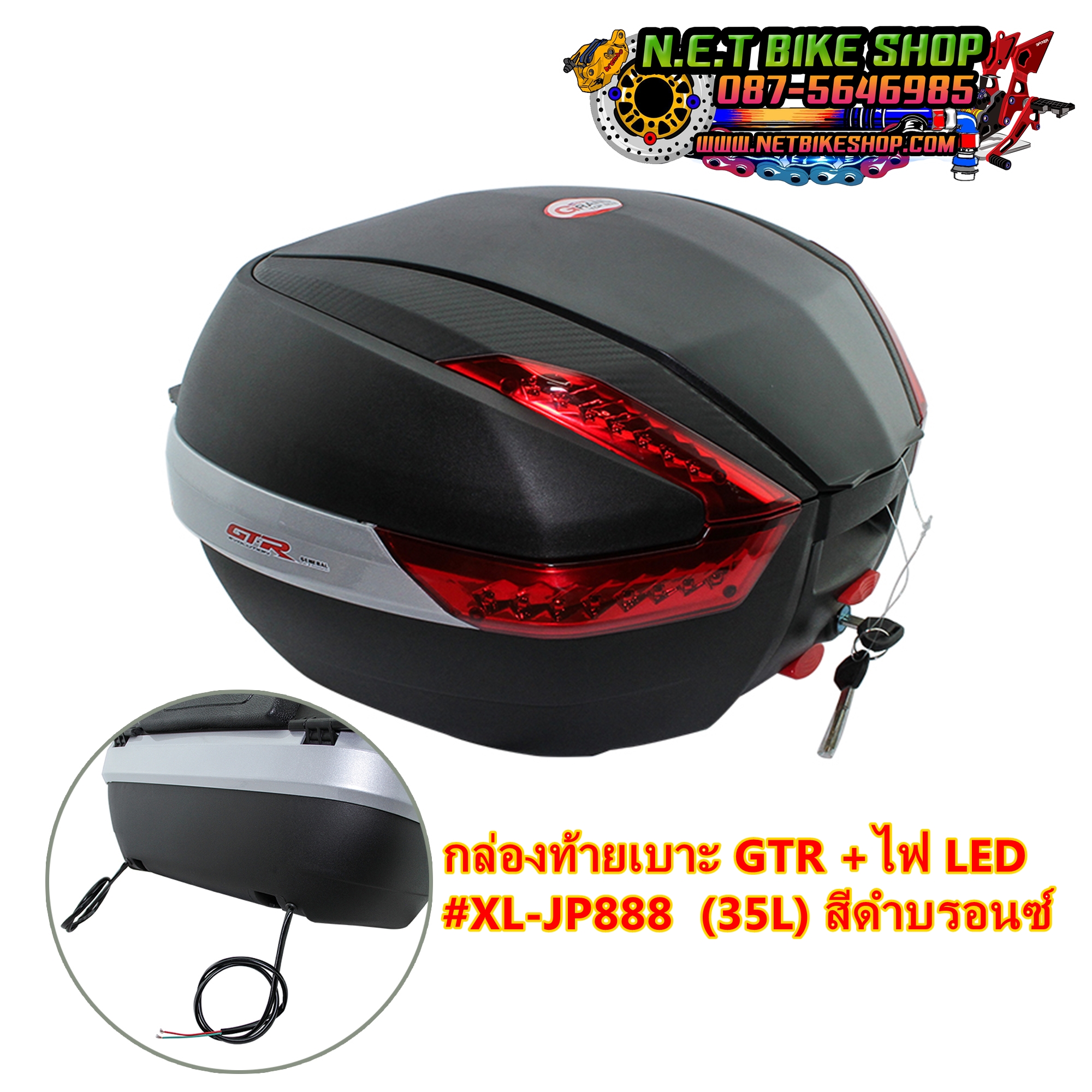 กล่องท้ายเบาะ + ไฟ LED GTR #XL-JP888 (35L) สีดำบรอนซ์